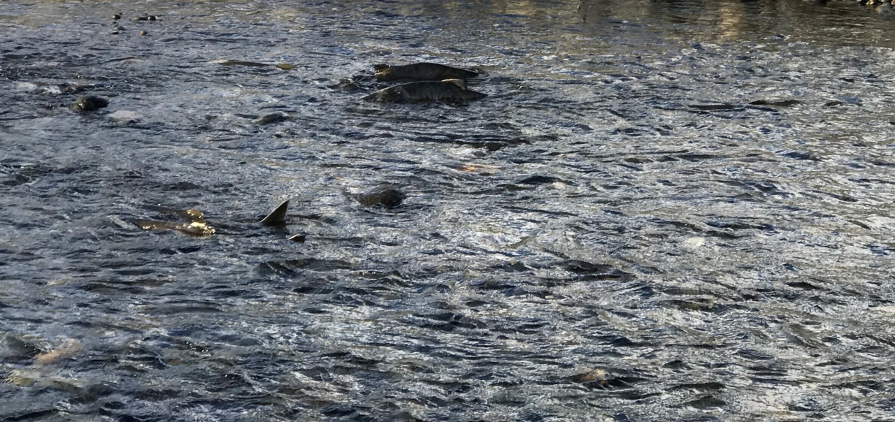 増毛町の中心部を流れる川で、9月中旬に鮭の遡上が見られました。オーベルジュましけ近くにある暑寒別橋が、気軽に鮭の遡上を見られるお勧めのビュースポットです。河口近くにある橋で、その先には鮭の捕獲施設がありました。