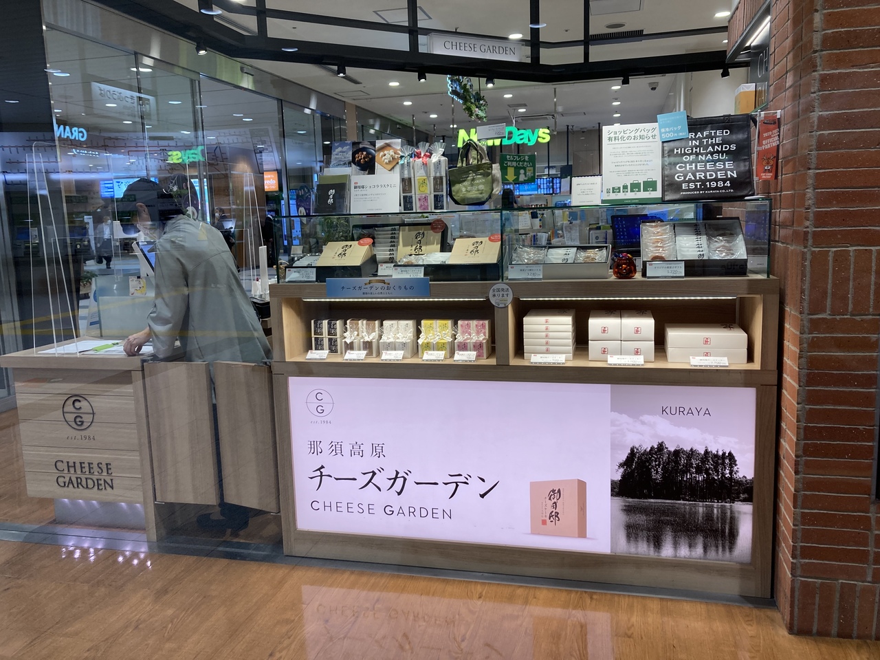 JR宇都宮駅の改札を出てすぐ、駅ビルのパセオがありますが、この中の一番改札よりの部分が栃木グランマルシェで、栃木の有名店の支店が入っています。チーズガーデンは那須街道沿いにありますが、そこまで行かずにここで買えるのを初めて知りました。