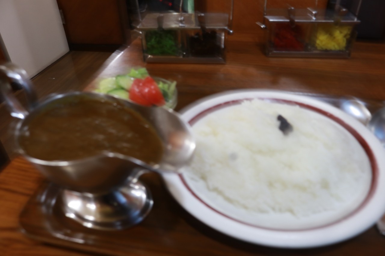 土曜日の17時頃に行ったときは、2人並んでいたので、5-6分待って入ることができました。ビーフカレーで、ご飯少な目でオーダーしました。ごはん少な目で、普通盛りくらいの量でした。ビーフカレーは欧風で美味しかったです。