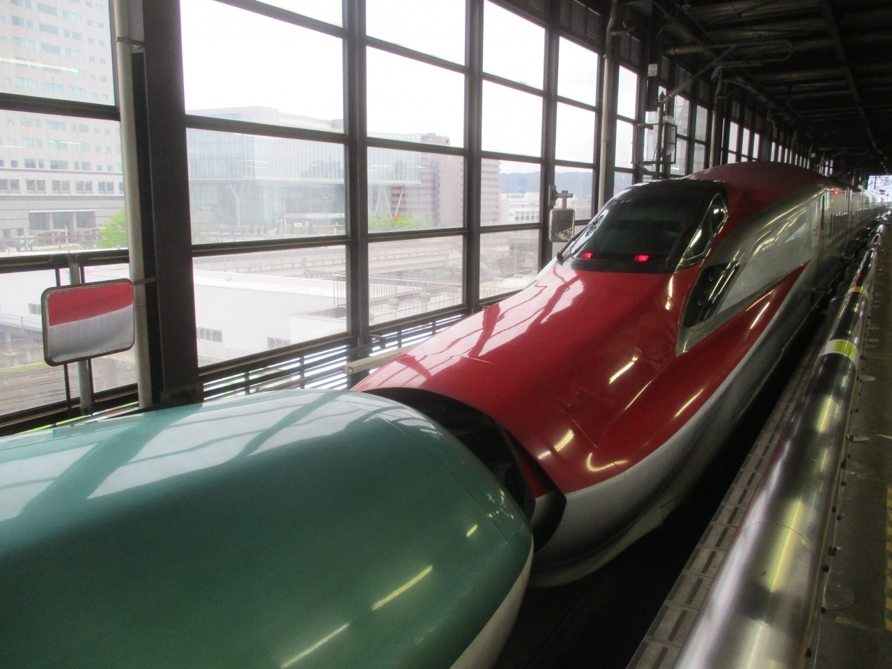 盛岡駅で乗車する際、秋田新幹線と北海道新幹線の連結・切り離し作業を見ることができました。こういった作業を見学できるのは秋田新幹線ならではのことだと思います。作業終了後、すぐに発車するので連結・切り離し作業の時刻はこまちの発車時刻を参考にした方が良かったです。