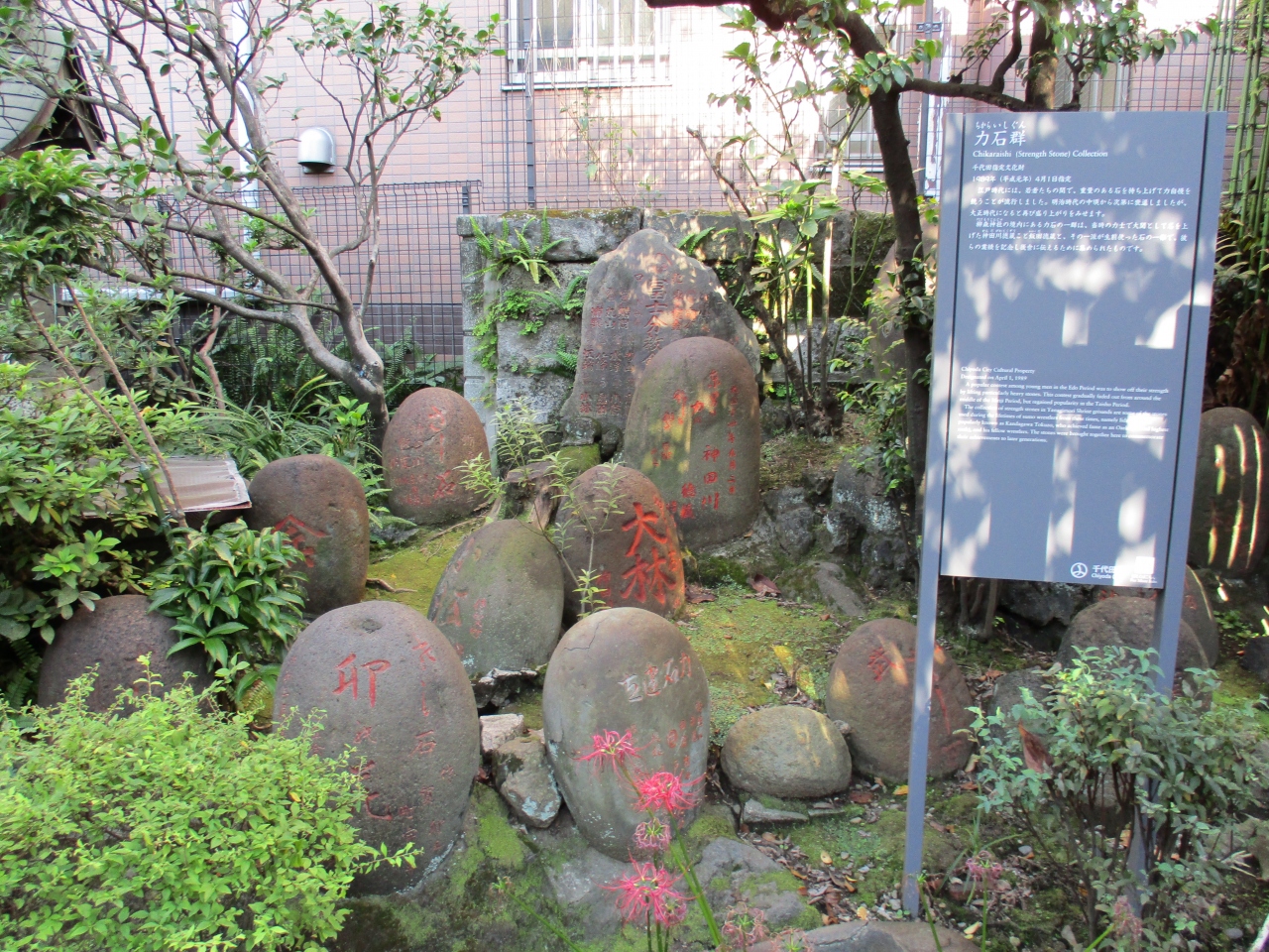 神田須田町の柳森神社に参拝した時に、境内にたくさんの力石が置かれていました。これだけたくさん力石が集まっているのも見たのは初めてなので、とてもびっくりしました。実際の重量は不明ですが、どれも重そうで腰を痛めてしまいそうな石ばかりでした。