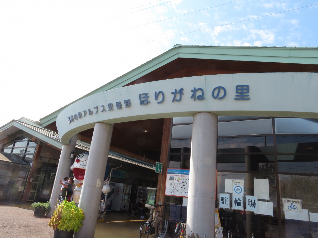 けっこう、広い道の駅です、まず外観を撮りに正面に回ると、大きなドラえもんが子供に人気で親子が次々と記念撮影してました。
