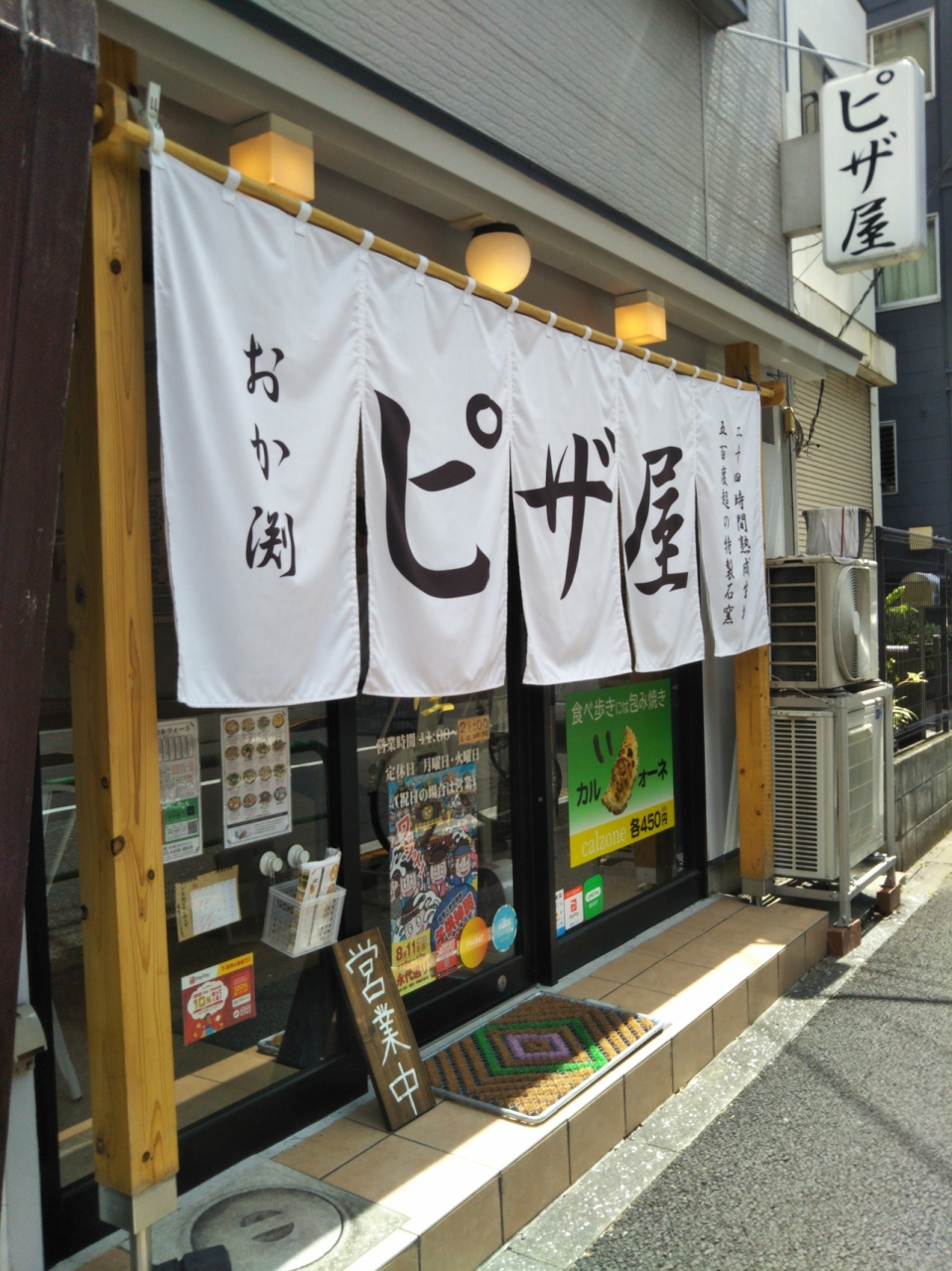 東京・江東区冬木を散策していたところ、『ピザ屋 おか渕』がありました。白い和風な暖簾がちょっと和風的なピザ屋さんです。店内にていただくことも出来ますが、テイクアウトも出来るようになっていて、デリバリーもしてくださいます。