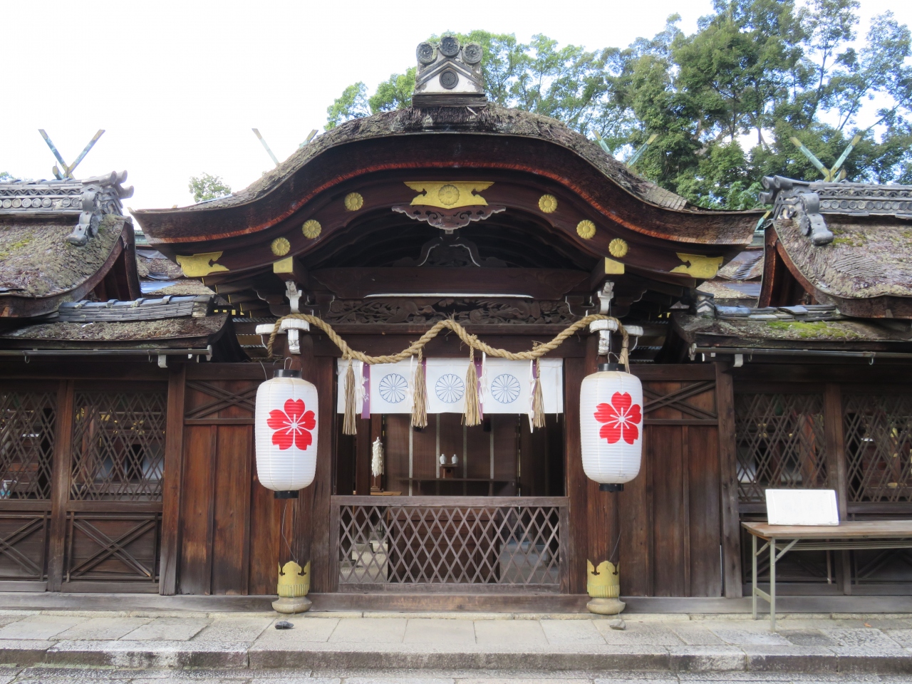 夜桜で有名な京都は衣笠にある平野神社です。10月に訪れましたので当然桜はありませんが、季節外れの開花が一部ありました。拝殿は引き続き工事中でしたが、本殿はお参りできる状態でした。