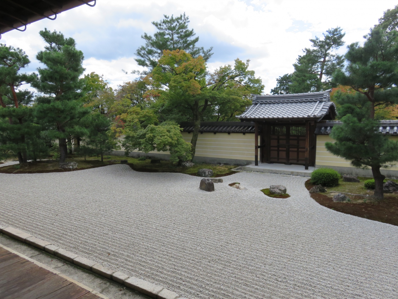 京都は立命館大学衣笠キャンパスの南に位置し、地域名もそのままの等持院です。足利氏の菩提寺ですが、建物は再建となっています。方丈を囲んでお庭が2つあって、南面は枯山水、北面は池泉廻遊式となっています。個人的には方丈のうぐいす張りと枯山水の庭に魅せられました。