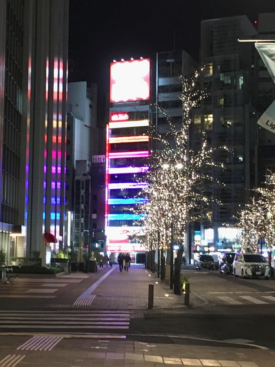 有楽町から日比谷に向かい丸の内仲通りに出ると、街路樹が電飾で光っていました。