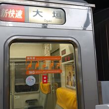 10月上旬の平日の22時台に、下りの新快速列車に、金山駅から乗車しました。座席は、出入り口部分と車端部が、固定式クロスシート、その他の座席が転換クロスシートでした。金山駅発車時点では、それ程混雑しておらず、お客さん全員が着席できる状況でした。したがって、快適な移動となりました。