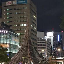 10月中旬の、夜の22時台に訪問しました。既に、撤去に向けた工事は開始されている、と報道されていますが、訪問した時点では、モニュメント本体には囲い等はされておらず、特に支障なく鑑賞することができました。なお、22時台であっても、周囲にある程度の明りがありますので、鑑賞は可能でした。