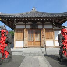 JR田端駅から動坂下方向に500mほど行ったところに建つ真言宗の寺院です。山門横には、江戸時代に流行した疫病を鎮めるために造立された、赤紙仁王と呼ばれる金剛力士像が立っています。参拝に訪れた人が自分の身体の悪い部位と同じところに赤紙を貼ることで、病気平癒を祈願したそうで、治癒した際には力士像が日夜病気の人を見舞うために歩き続けるため草履が必要だとの思いから、草履を奉納する習わしがあったそうです。今も二体の像には赤紙がたくさん貼られていました。