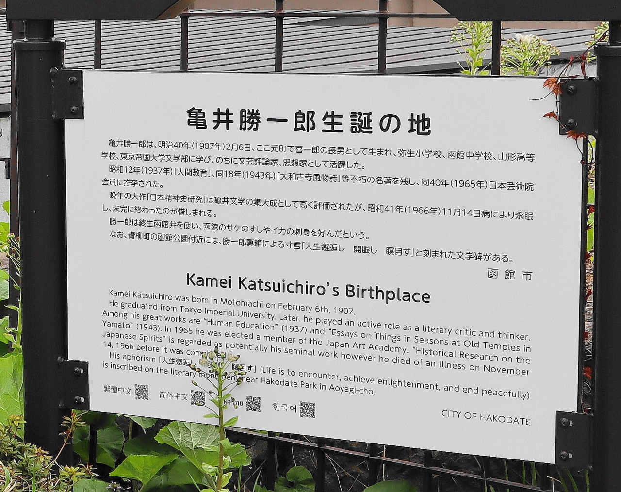 昭和中期に文芸評論家・思想家として活躍した亀井勝一郎の生家近くに建立されています。
