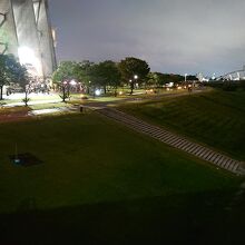 9月下旬の夕方に訪問しました。当日は、サッカーのJリーグの開催日ということもあり、公園内は活気に溢れていました。実際に公園内を歩いてみた感想としては、桜の木が植えられるなどしており、緑豊かに整備されているな、と感じました。