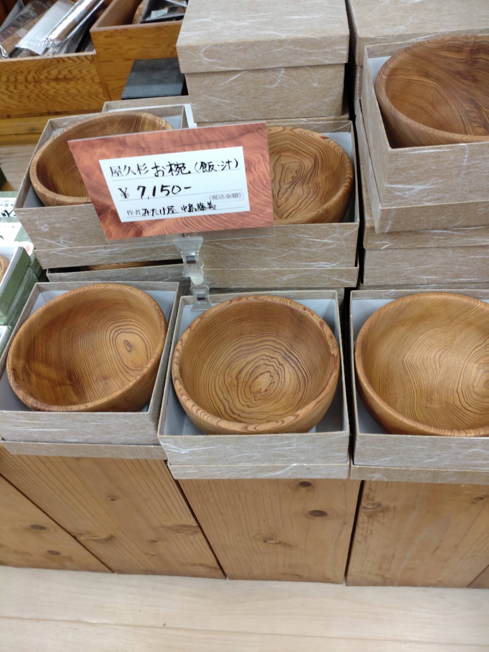 宮之浦港に近い大きなお土産屋さんです。写真展の催しをしてました。屋久島名物のお菓子の品ぞろえも良く、屋久杉を使った工芸品も充実していました。二階はレストランになっていました。二階の奥の方には 高価な屋久杉の家具なども置いてありました。