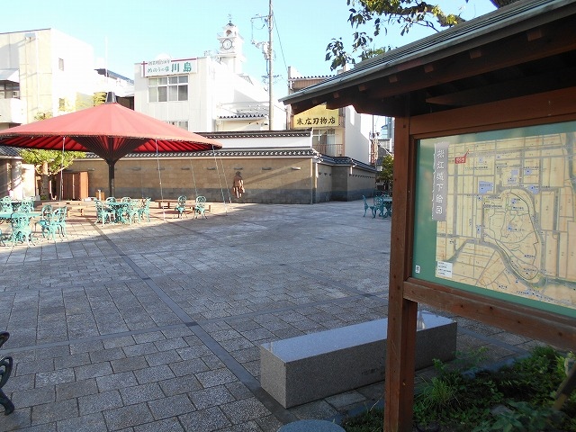 カラコロ広場のカラコロという名称は、明治期に松江を歩く人たちの下駄の音がカラコロと響いていたことから、文豪小泉八雲がつけたものになります。