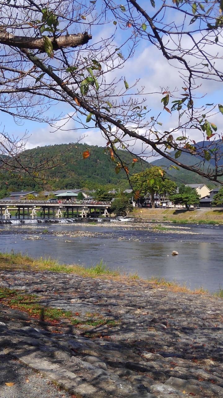 平日の朝に行きました。観光客は朝早いので少な目でした。保津川のせせらぎがさらさらと流れて大変涼しげです。シロサギが川の中の岩にまっすぐ微動だにせず立っていました。のどかで美しい風景でした。かかる渡月橋が景色にぴったりマッチしていました。
