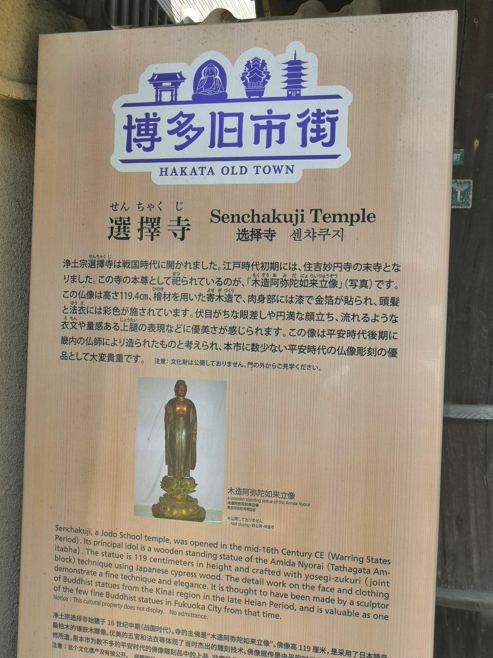 呉服町から程近い場所にあり、選擇(せんちゃく)とは悪を除き善を選び出すという意味だそう。こじんまりとしたお寺で山門の近くに説明書きがあるのでお寺の特徴はわかるようになっています。そこにも書かれている通り、文化財が非公開なのが残念です。