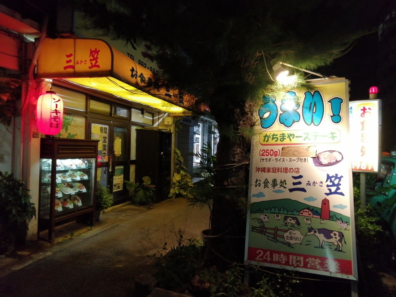 那覇では定番の沖縄料理の大衆食堂です。こういう味わい深いお店は大好きです。ノーマルな沖縄料理は若干食べ飽きていたので、ここは趣向を変え「チャンポン」(650円)をいただくことに。いわゆるちゃんぽんとは長崎発祥の具沢山の麺料理ですが、沖縄のものはかなり違います。店によって多少の違いはありますが、ここ三笠のものは玉ねぎとひき肉と共にご飯を炒め、その上から卵をとじたもの。