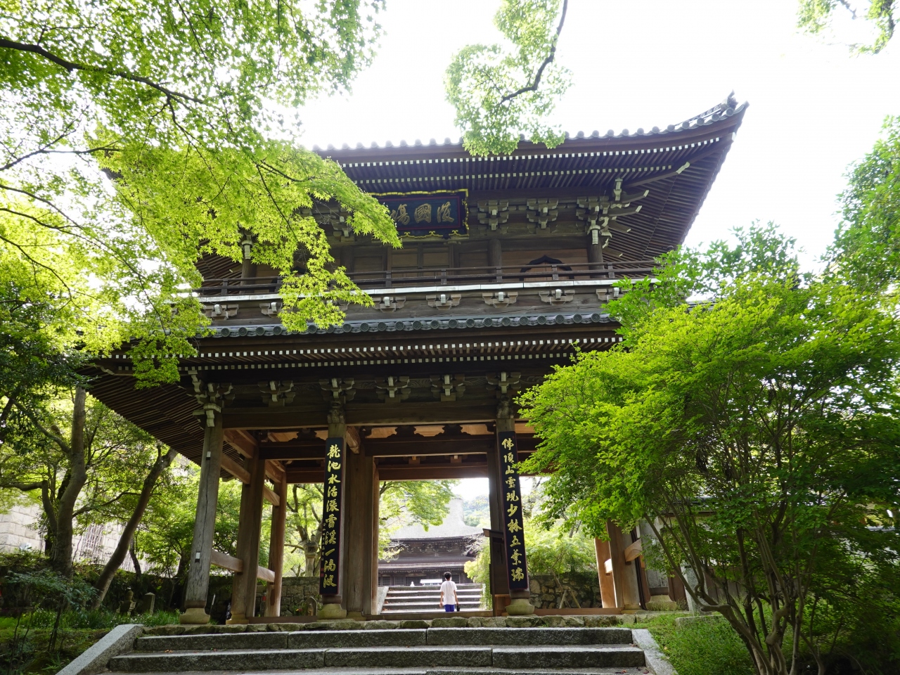 見どころの多い長府エリアでも必見スポットといえる功山寺ですが、その表門ともいえる山門は二重門になっており、大きさ、美しさとも圧巻でした。山門の周囲を楓が取り囲んでおり、私たちが訪れた時は美しい緑でしたが、紅葉の時期は真っ赤に色づいた葉が山門を彩る姿が思い浮かびます。是非その時期に再訪したいと感じさせる光景でした。