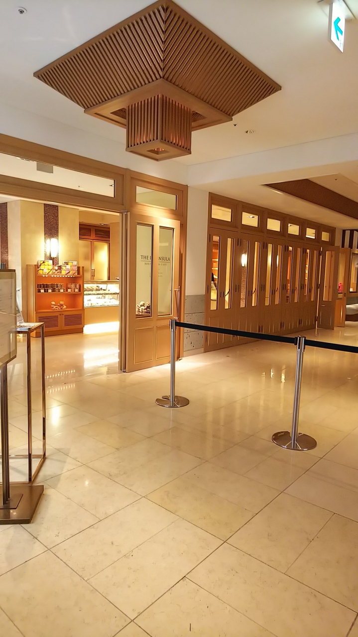 地下にケーキやお土産を売っているショップがある。並びにケーキを作っている所が見られるガラス張りの通路があるのが見所。ショップは店内で飲食できるようですが、誰もいませんでした。コロナで閉鎖しているのかしら。チョコレートを買いにきましたが、そんなに種類があるわけではありませんが、白いロビーボーイハットに入った可愛いチョコレートを購入しました。以前香港のペニンシュラの地下のチョコレートショップにはピンからキリまですごくたくさんのチョコレートの種類があり行くのが楽しみでしたが、もうしばらく香港には行けていない。東京のペニンシュラにもそんなチョコレートショップが欲しいなあ