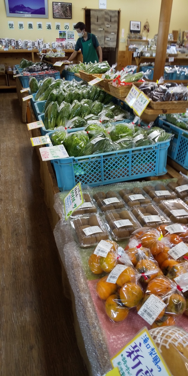 新鮮な農産物がたくさんあり、きくらげやシイタケ柚子胡椒、スダチにミカンなどの特産品にとり天などはターミナルの売店で買うより
