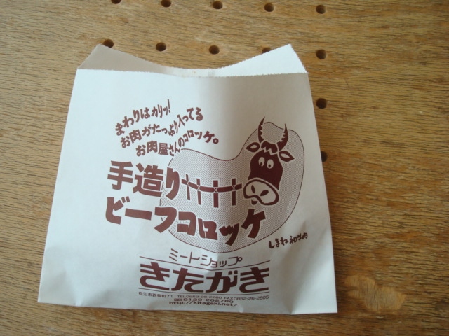 カラコロ大黒から徒歩5分くらいでした。ビーフコロッケ(120円・2019年8月時点)を店内のベンチでいただきましたが、外はサクサク、中は柔らかめで、美味しかったです。
