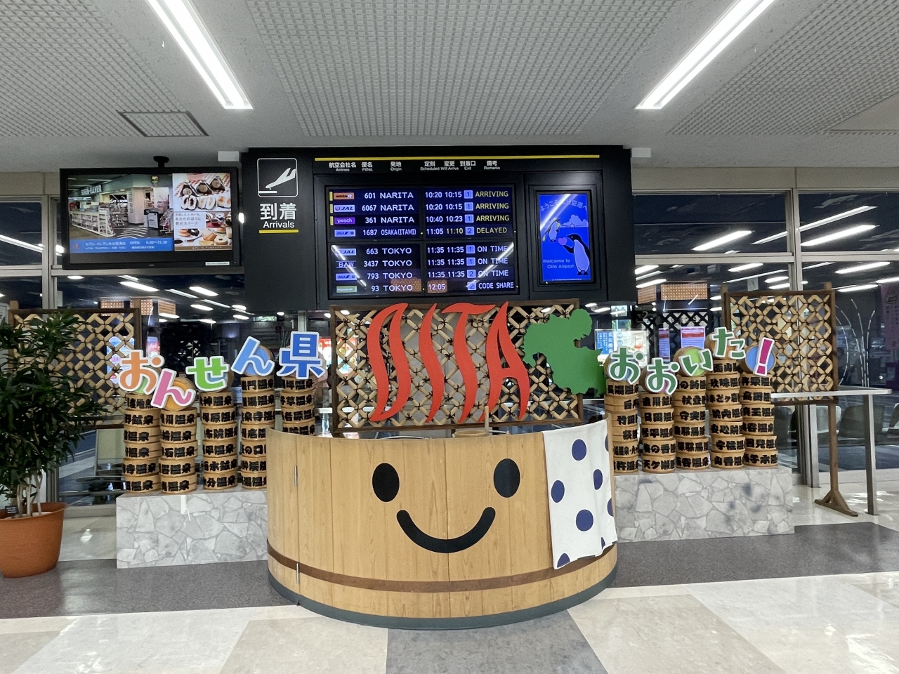 到着口を出るとそんな看板がお出迎えする 今熱い大分空港。