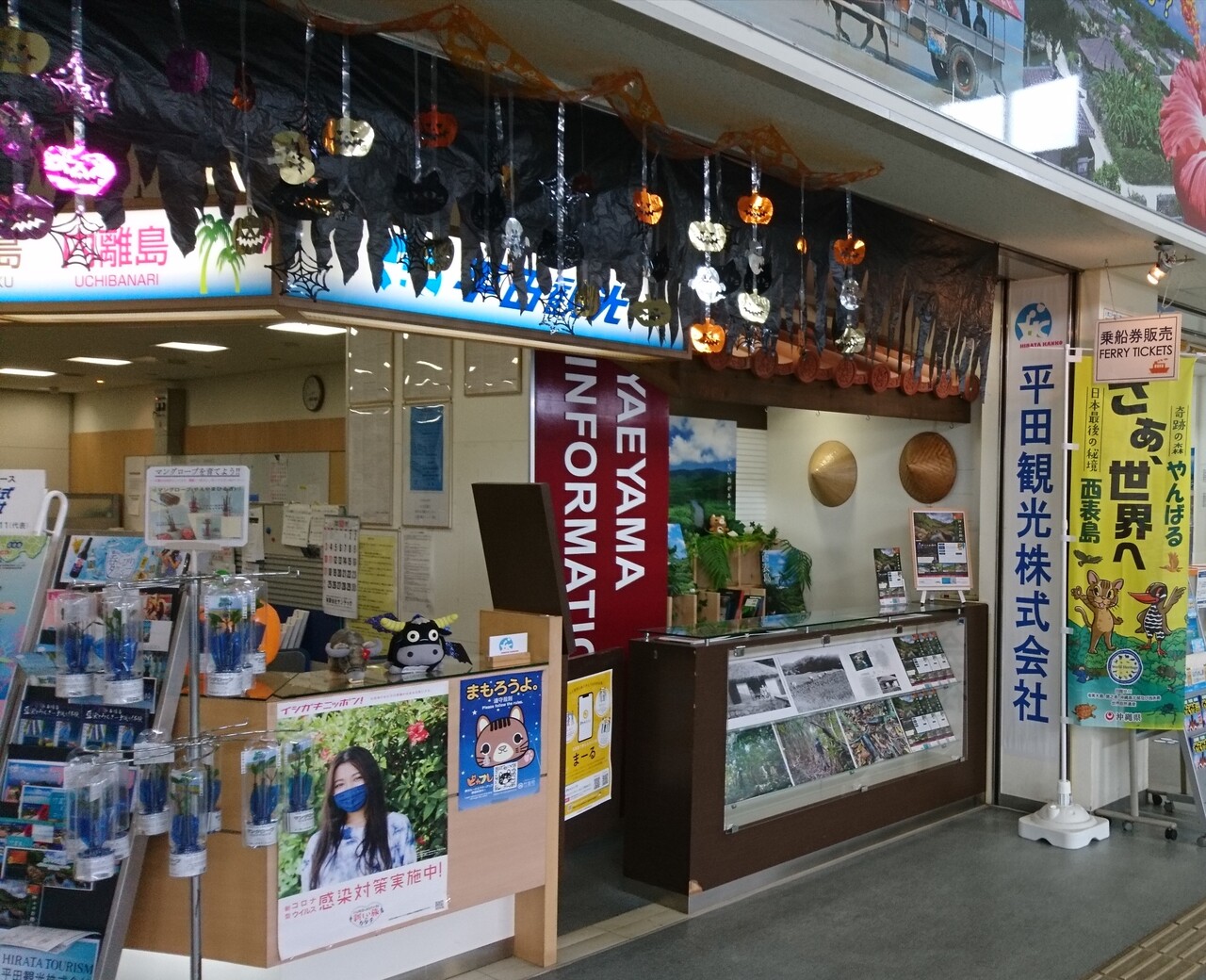 平田観光は離島ターミナル内にもカウンターがあり、そこでは多くのツアー内容があります。自分でレンタサイクルや水牛車、シーカヤックなどを予約するのが面倒な人はツアーも便利。