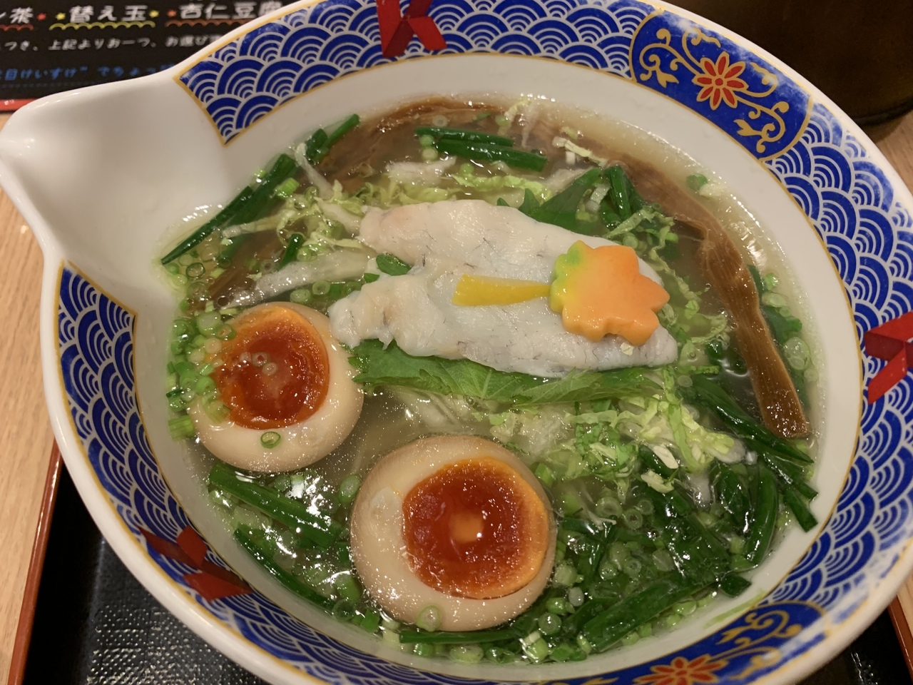 ふぐだしの塩らーめんを注文、上品な味付けで美味しいです。