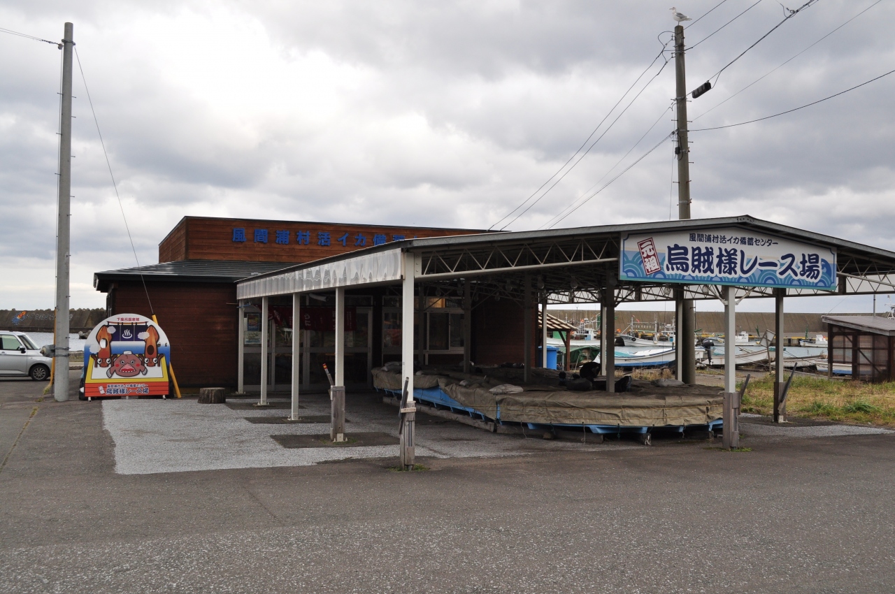 2020年11月に青森旅行に行った際に立ち寄りました。下北半島の北側、大間崎から車で30分ほどの風間浦村下風呂にある施設です。海辺を散歩していたら偶然見かけて立ち寄ってみたのですが、コロナ禍ということもあり開いておりませんでした。お店の外に「烏賊様レース場」と書かれたプール状のコースが置かれていましたが、なんだろうと思い後で調べたところ自分で購入した烏賊を競わせるというイベントのようで、「烏賊様」という名前もなんともGoodなネーミングセンスで良いですね。また来ることがあれば今度は試してみたいですね。なんとも面白そうな施設でした。