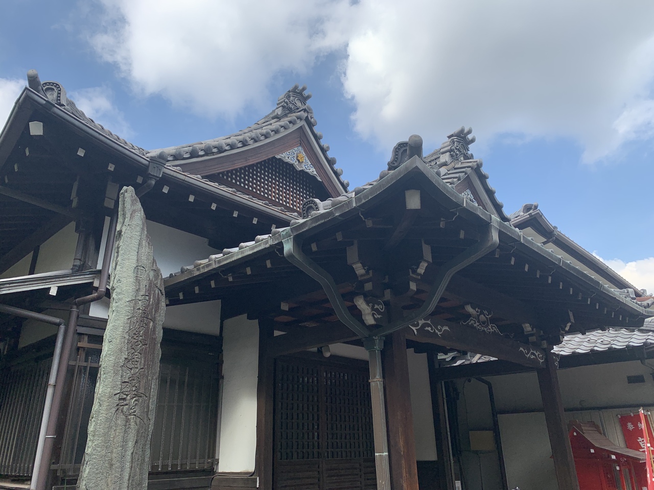 須賀神社の北側、女坂の石段の西側にあるレンガの山門のお寺です。