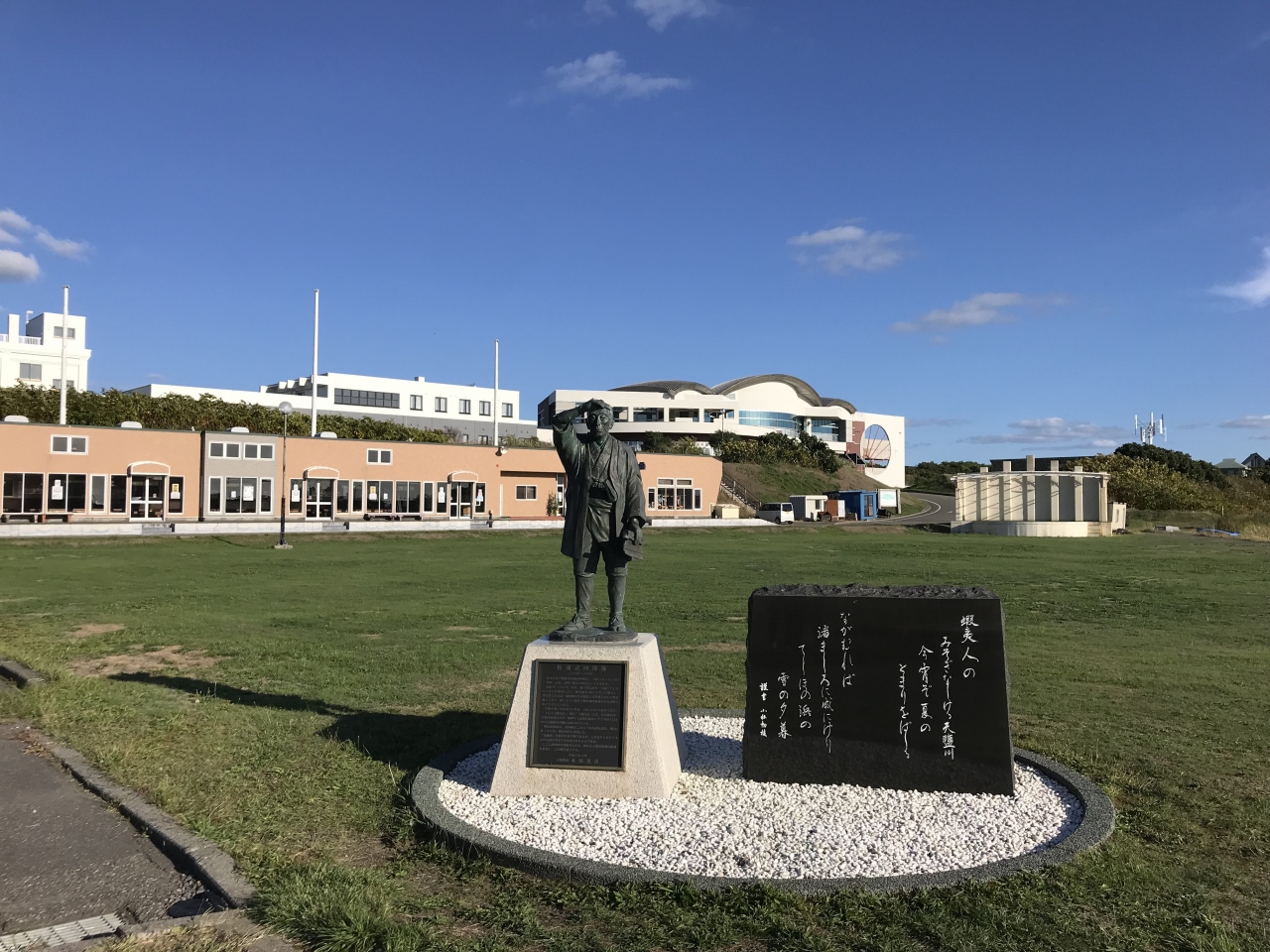 イベントが開催されることもあるそうですが、この時は誰もいなくて静かに景色を楽しむことができました。園内からは利尻富士も見え、ちょうどその利尻富士を見るように、松浦武四郎の碑が設置されています。