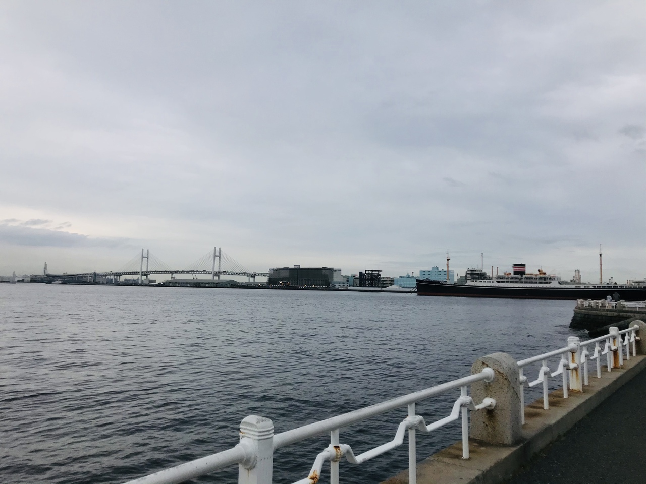 2021年9月中旬、山下公園を訪れた時に海の方を見ると横浜ベイブリッジが見えていました。