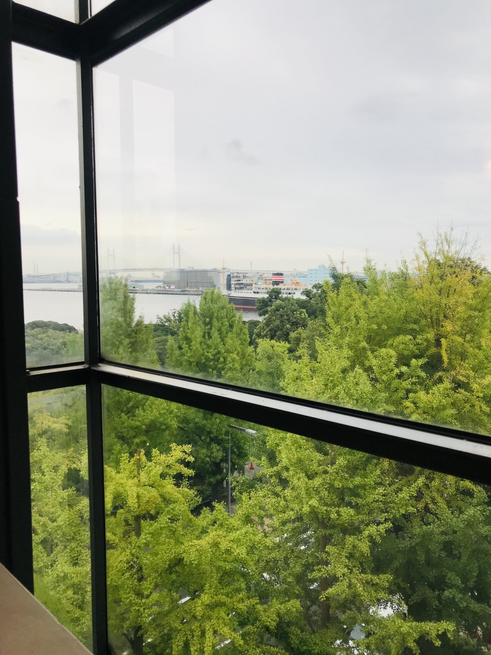 ちなみに、神奈川県民ホールの階段の窓からも見えました。