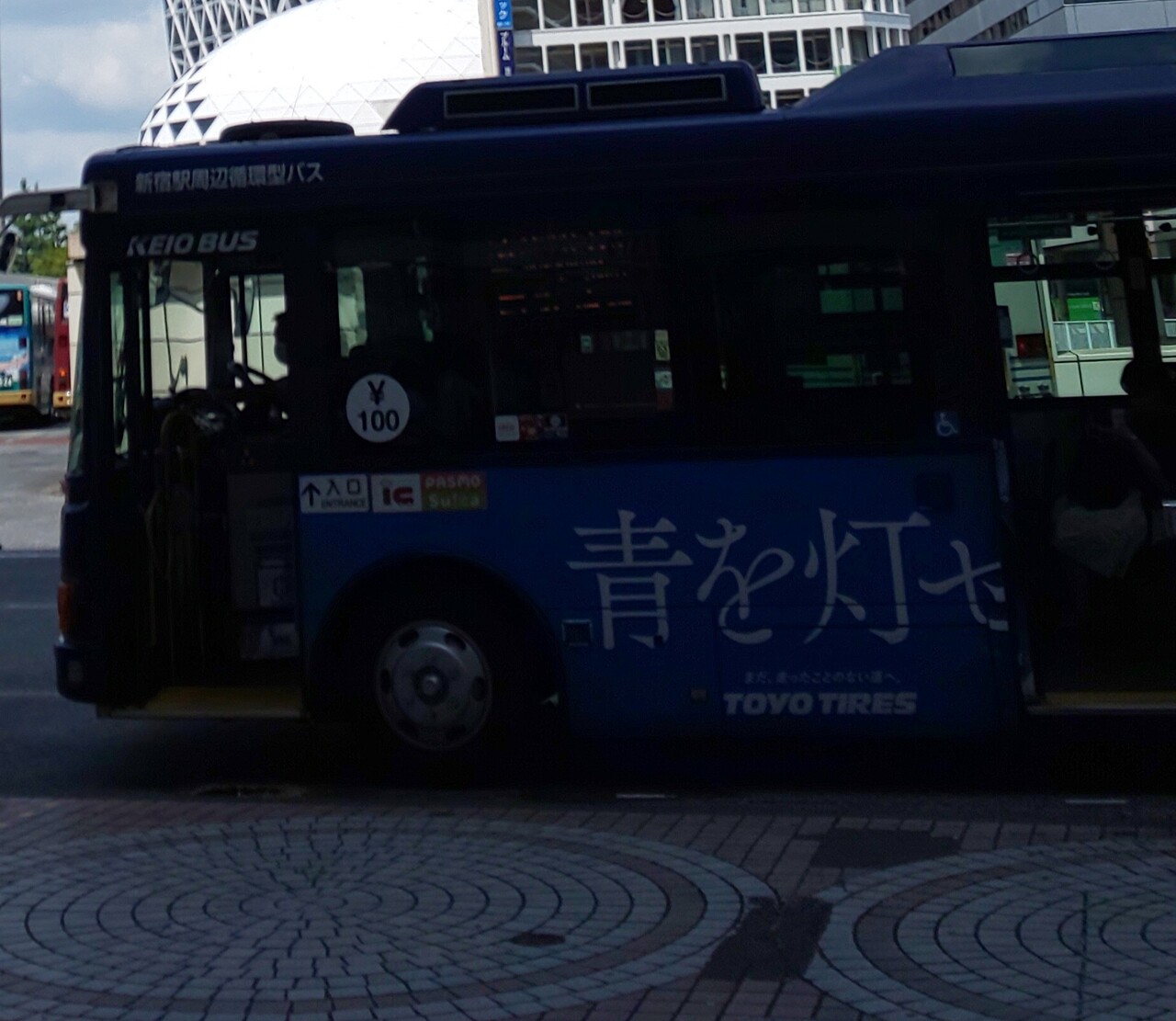 新宿駅西口から新宿WEバスに乗りました。乗車料金は100円なのでとてもお得感があります。