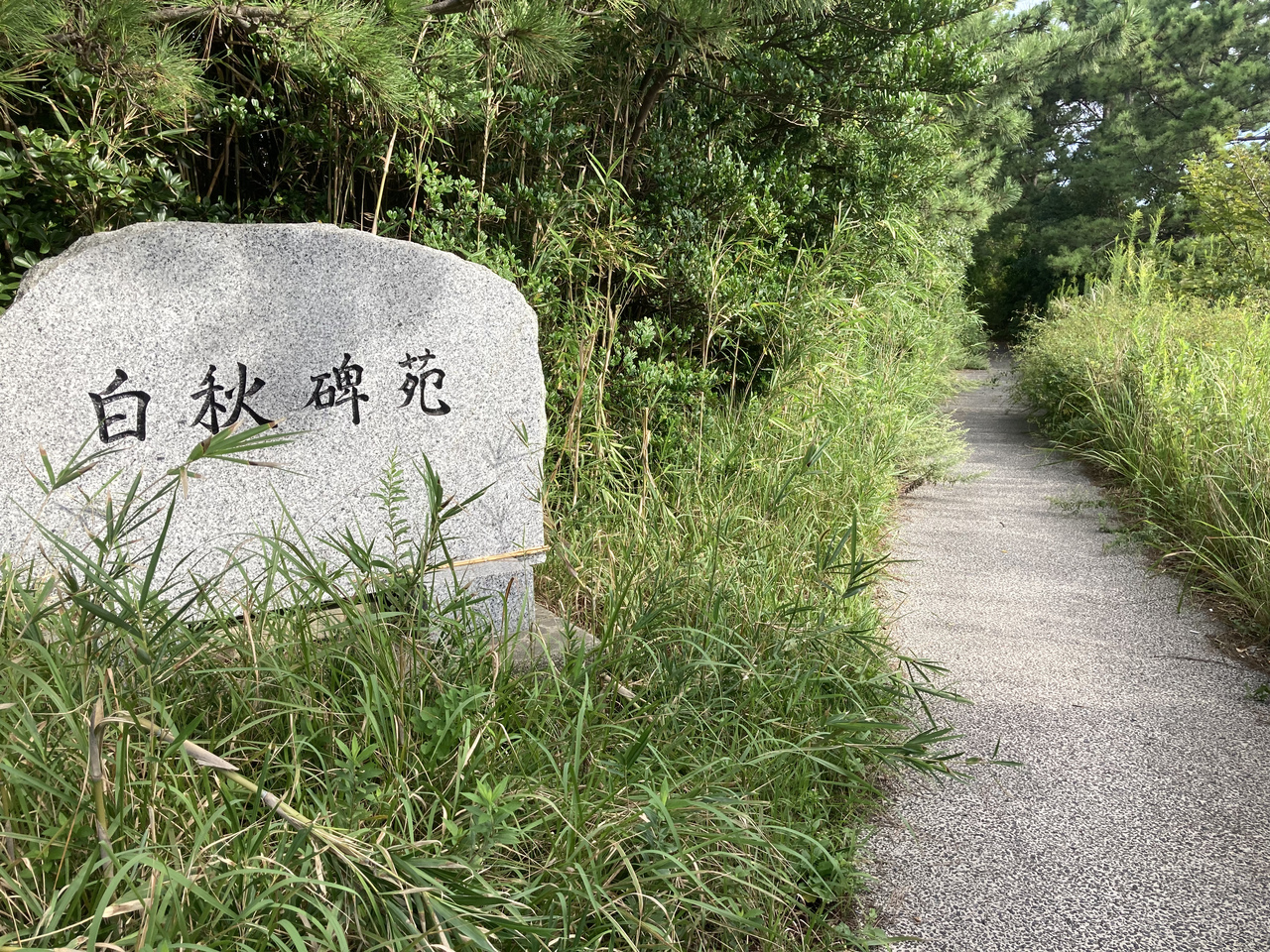 入口の大きな石碑が建っていて、そこから散策を開始して、海の手前にあります。