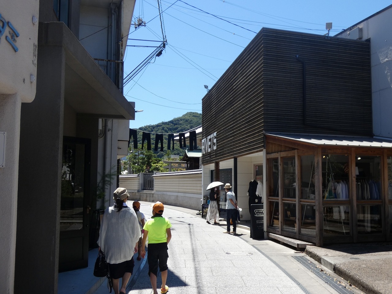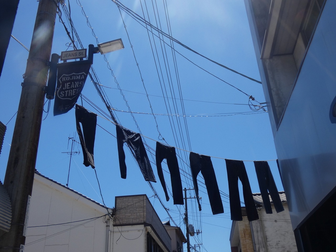 倉敷市の児島はジーンズで有名とのことで、ジーンズ店舗が並んでいる通りがジーンズストリートです。通りの上にジーンズを干した様に飾っているのは、インスタ映えするスポットです。実際に藍を使っている店は桃太郎ジーンズ他数店だけとのこと。コロナと盆の時期のためか、店も少なく、今一つ盛り上げに欠けていました。ジーンズも高くて、本当のジーンズ好きでないと買わないかな。インディゴを使った青いソフトクリームもありました。塩ソフトで、暑さと疲れた体には美味しかったです。野崎家旧住宅近くに専用駐車場あり。