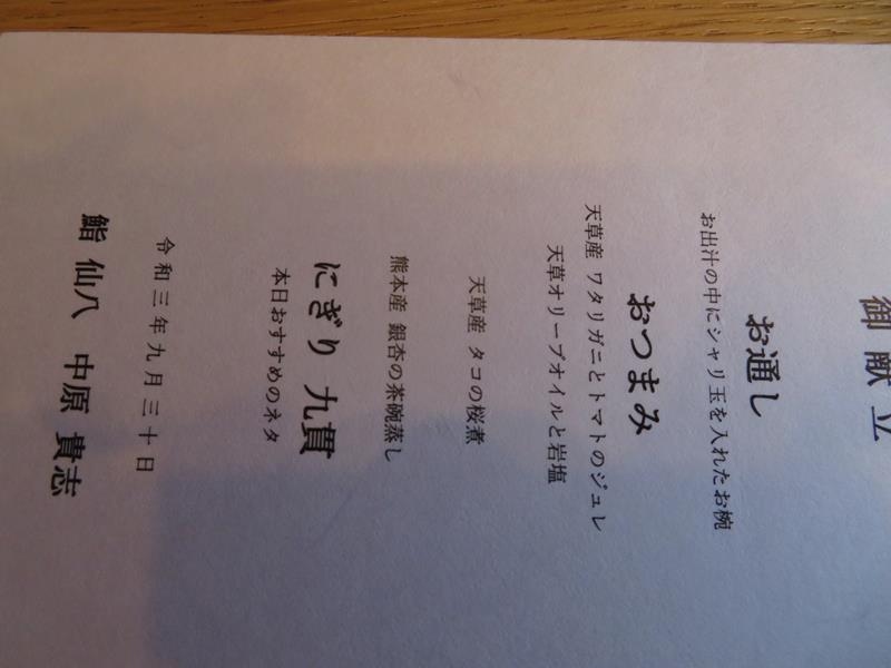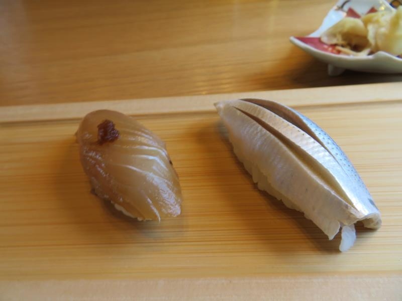 趣向を凝らしたお通し、おつまみから始まって車内で握ったお鮨が順番に2貫づつ提供されました。