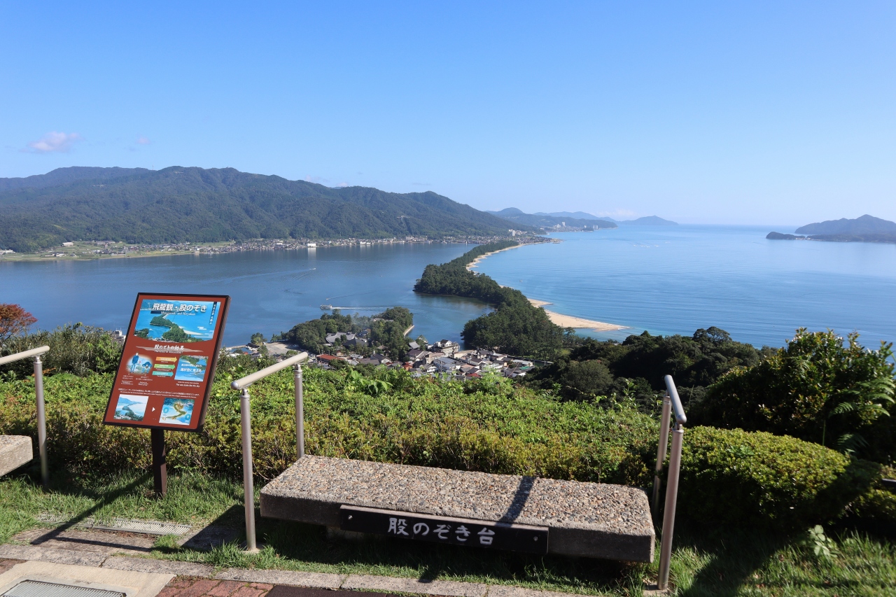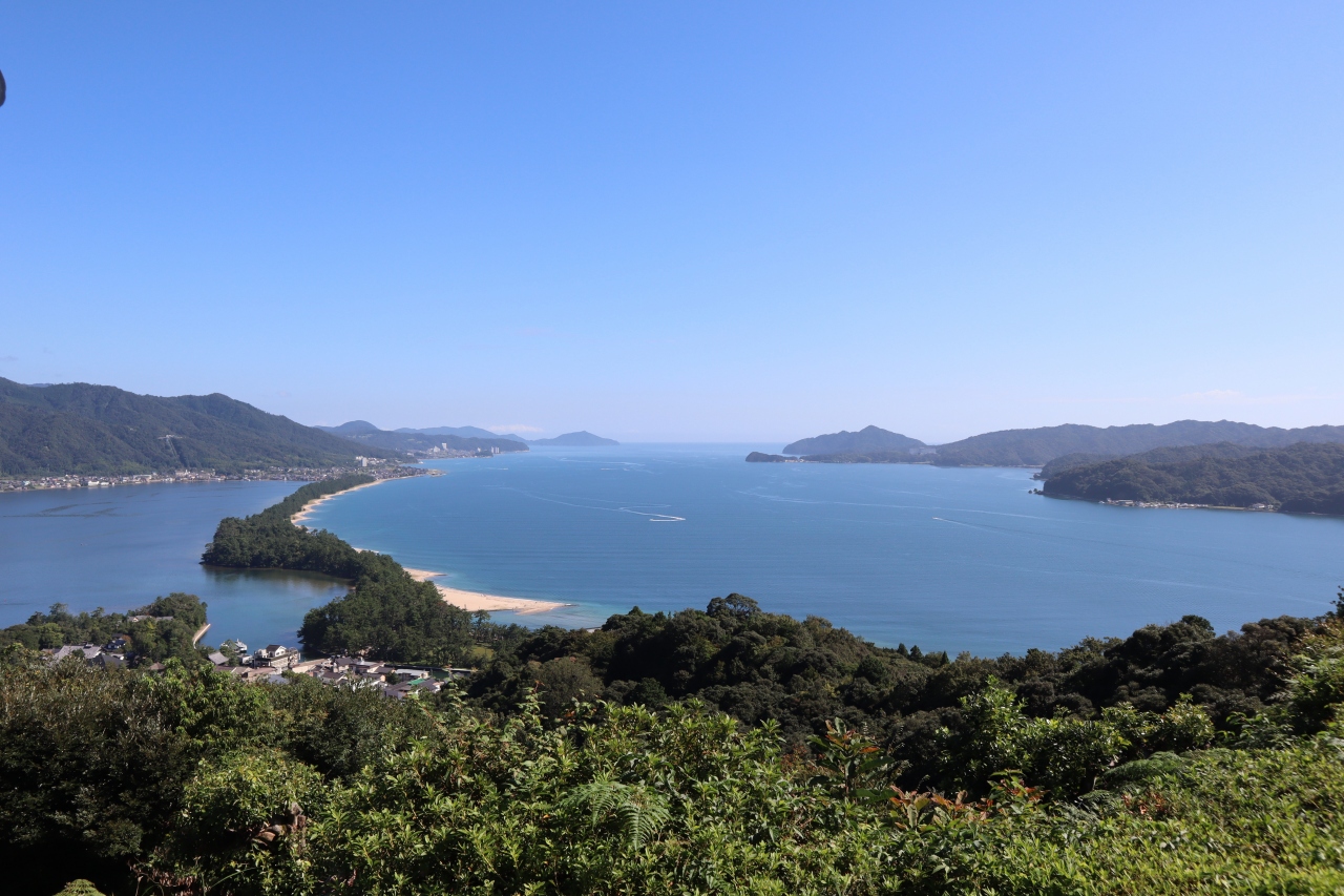 ここからの天橋立の眺めは、白砂もよくわかり、白砂青松の砂嘴が美しく眺められるのが特長。