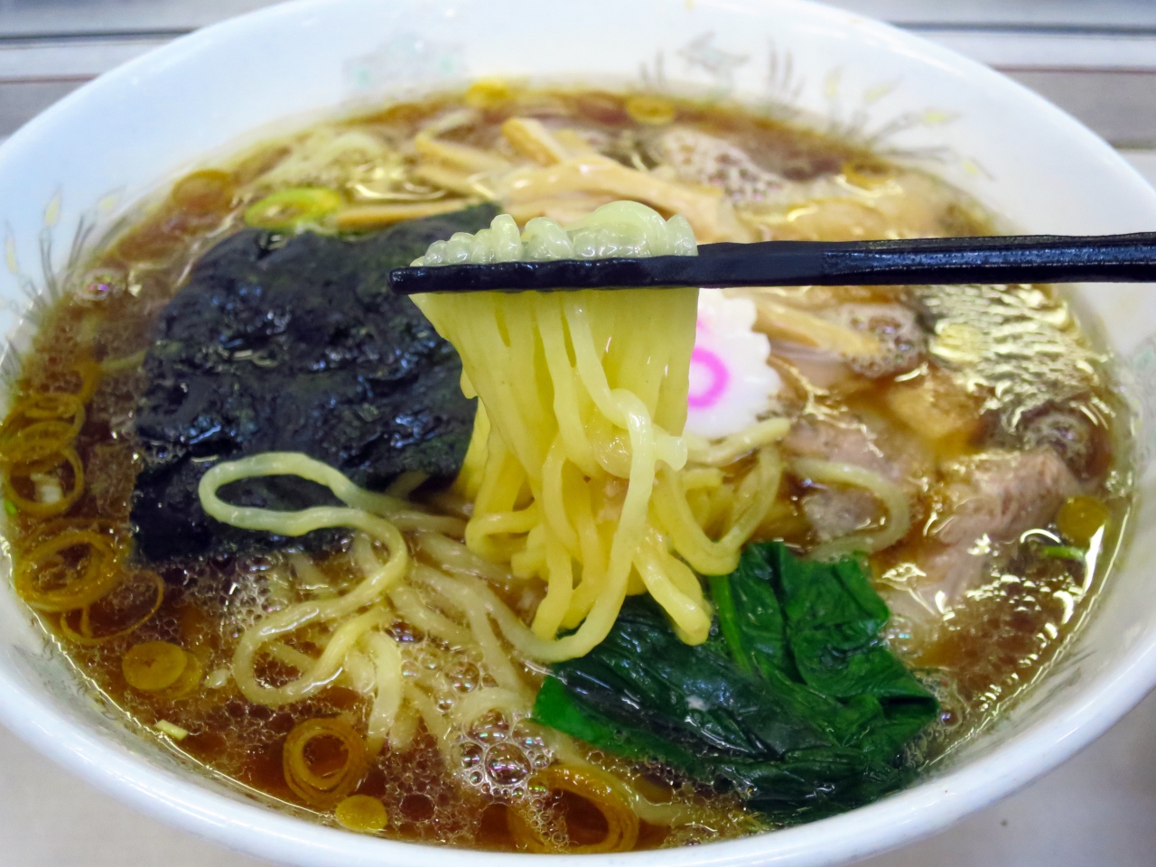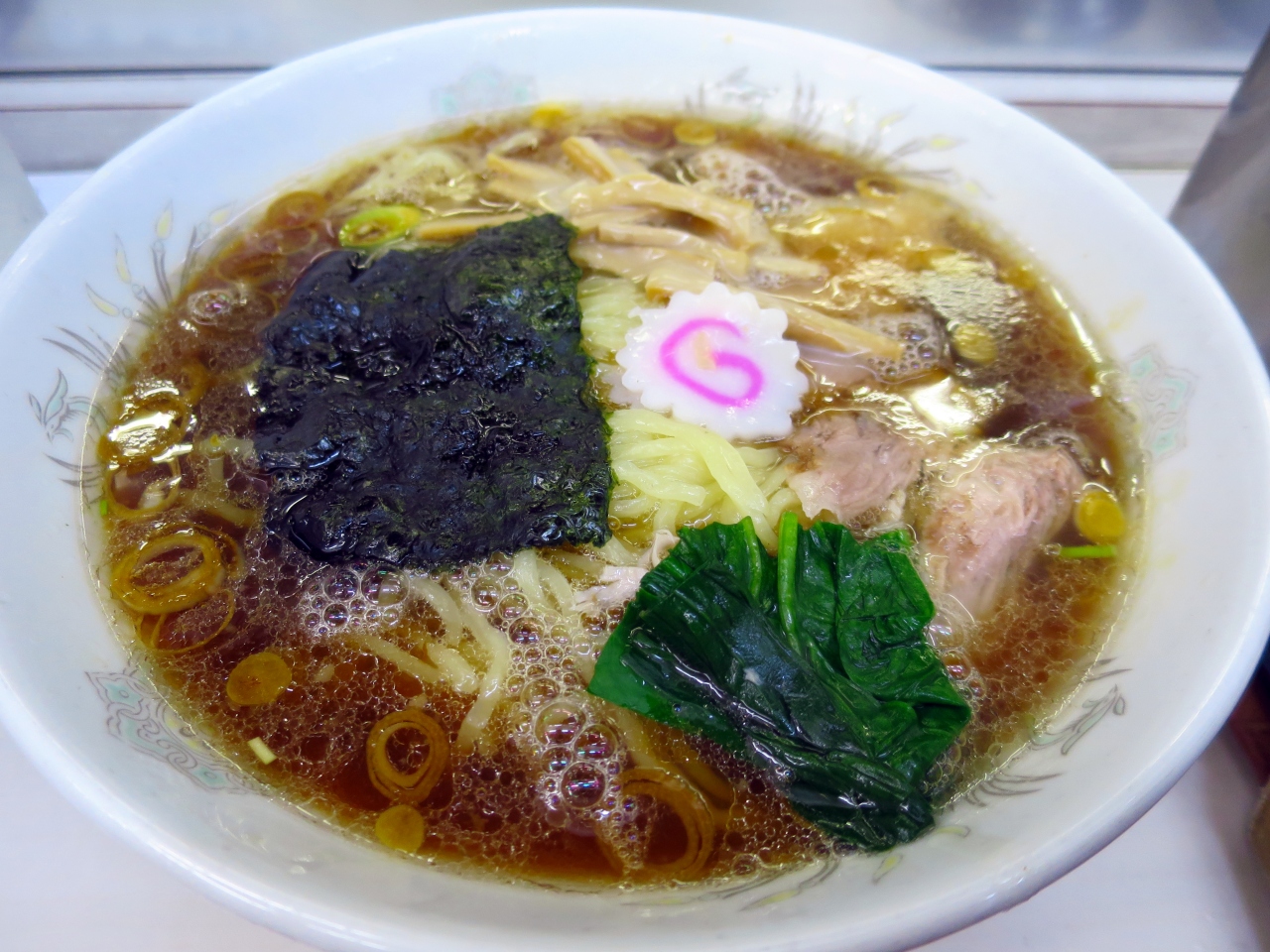 見た目は典型的なラーメン食堂のラーメンで、味も食べ始めた時はそれほど驚きも新しさも無く、何故長蛇の列が出来るのか訝っていました。しかし、麺のつるつるとした喉越しともちもととした食感、スープは味わえば味わう程コクが深まるように感じ、なるほどこれは高い人気を誇る、と頷けました。