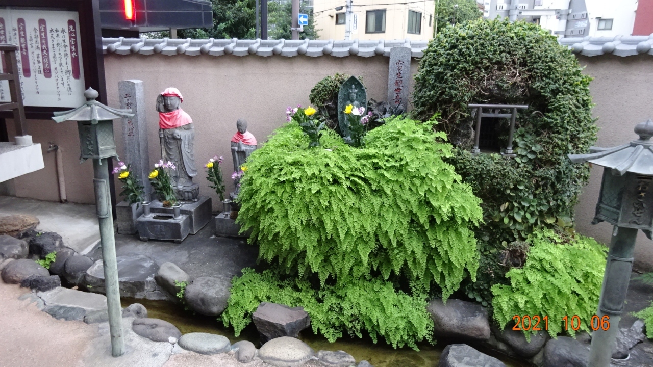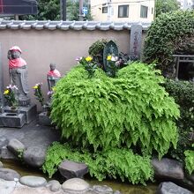 門を入って、すぐ左に有る水かけ地蔵のシダは圧巻です