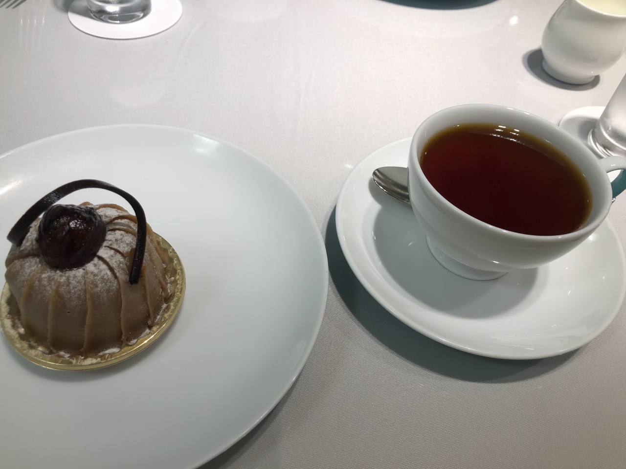 従姉と8階の喜水亭でランチの後、少し歩いて、地下1階のここへ食後のお茶をしに来ました。目が欲しがったので、モンブランとイングリッシュブレックファーストティーのケーキセットを頼みました。一人1100円。しっかりと紅茶の味がし、モンブランも美味しかったです。