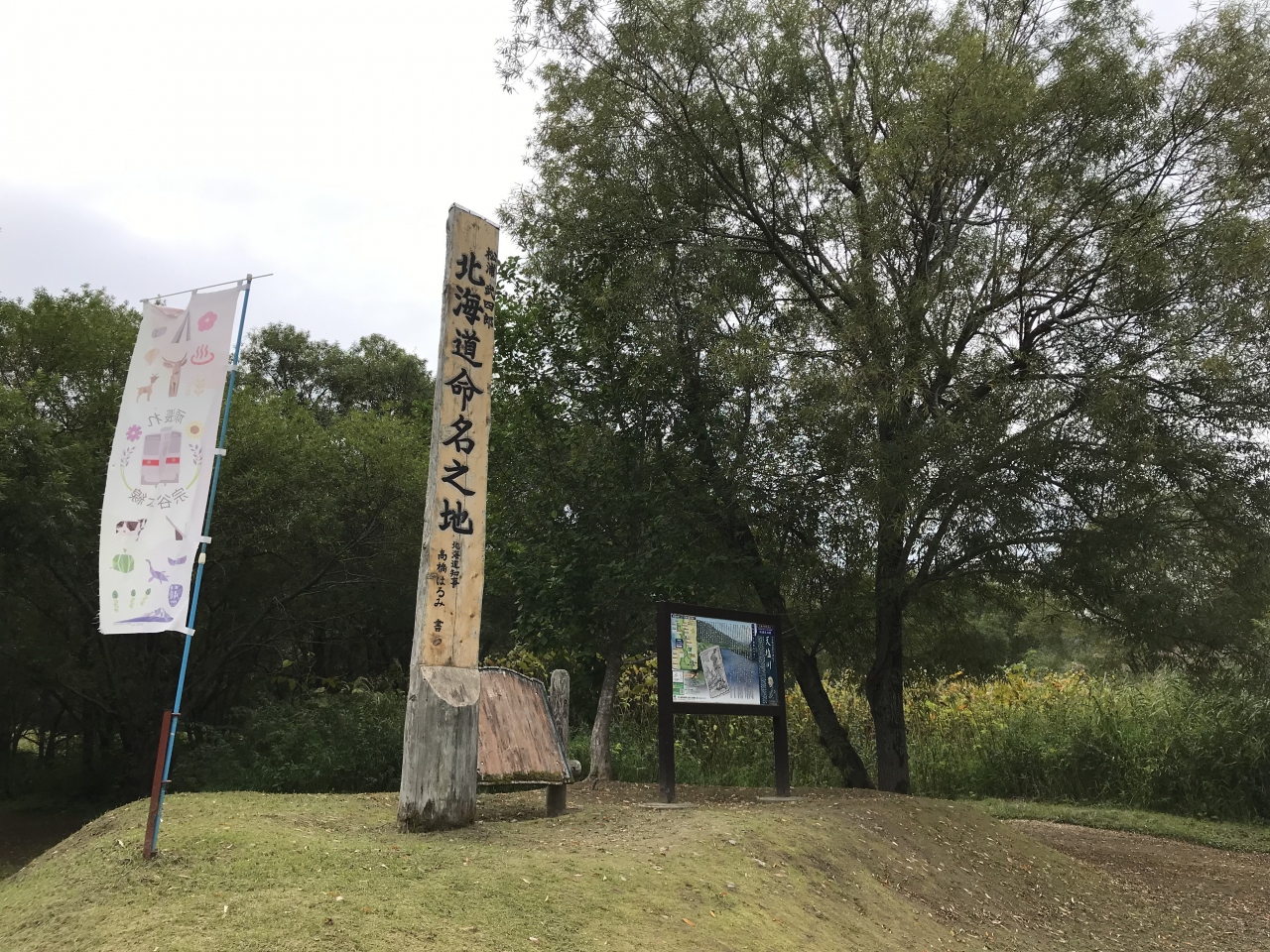 中川町から音威子府村へ向かう途中に立ち寄りました。場所は、ややわかりづらいですが、国道40号線沿いに、「北海道命名の地」入口と案内が設置されています。そこから砂利道を進むと駐車スペースがあり、そこに車を停めて少し歩くと「北海道命名の地」の碑があります。