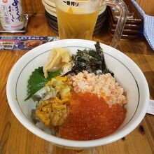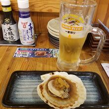 生ビール、ほたて焼き、海鮮丼を頂きました普通に美味しかったです。