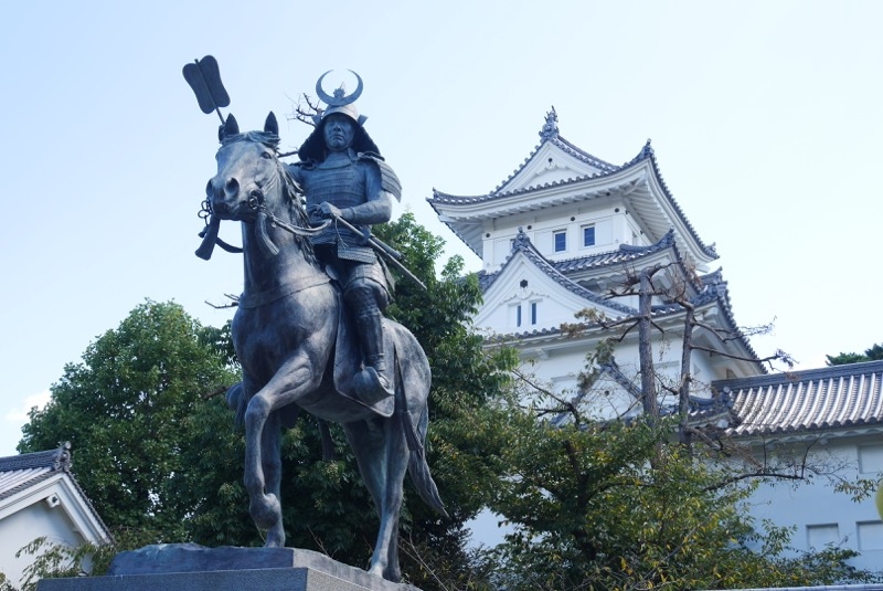 絶妙な位置に設置してくれているので、誰でも美しい構図(大垣城をバックにした像)の写真を撮ることができます。大垣城の敷地内ではなく、大垣城の隣の公園にあるので、お城だけを見に行くと見逃してしまう可能性があるので、散策の前に知っておくといいスポットだと思います。