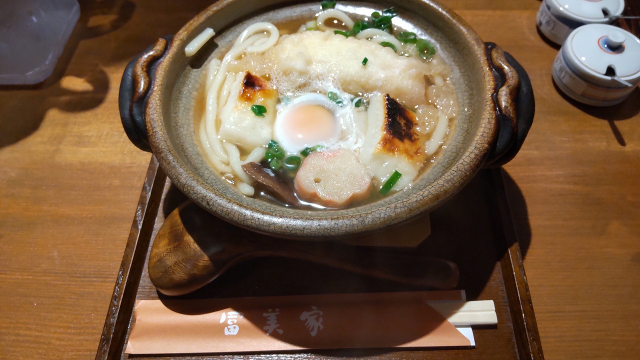 第一声、「甘い!」京都のおうどんは出汁の香りたっぷり薄味のいめーじがあったのでちょっとびっくりしましたが、とても美味しく頂きました。