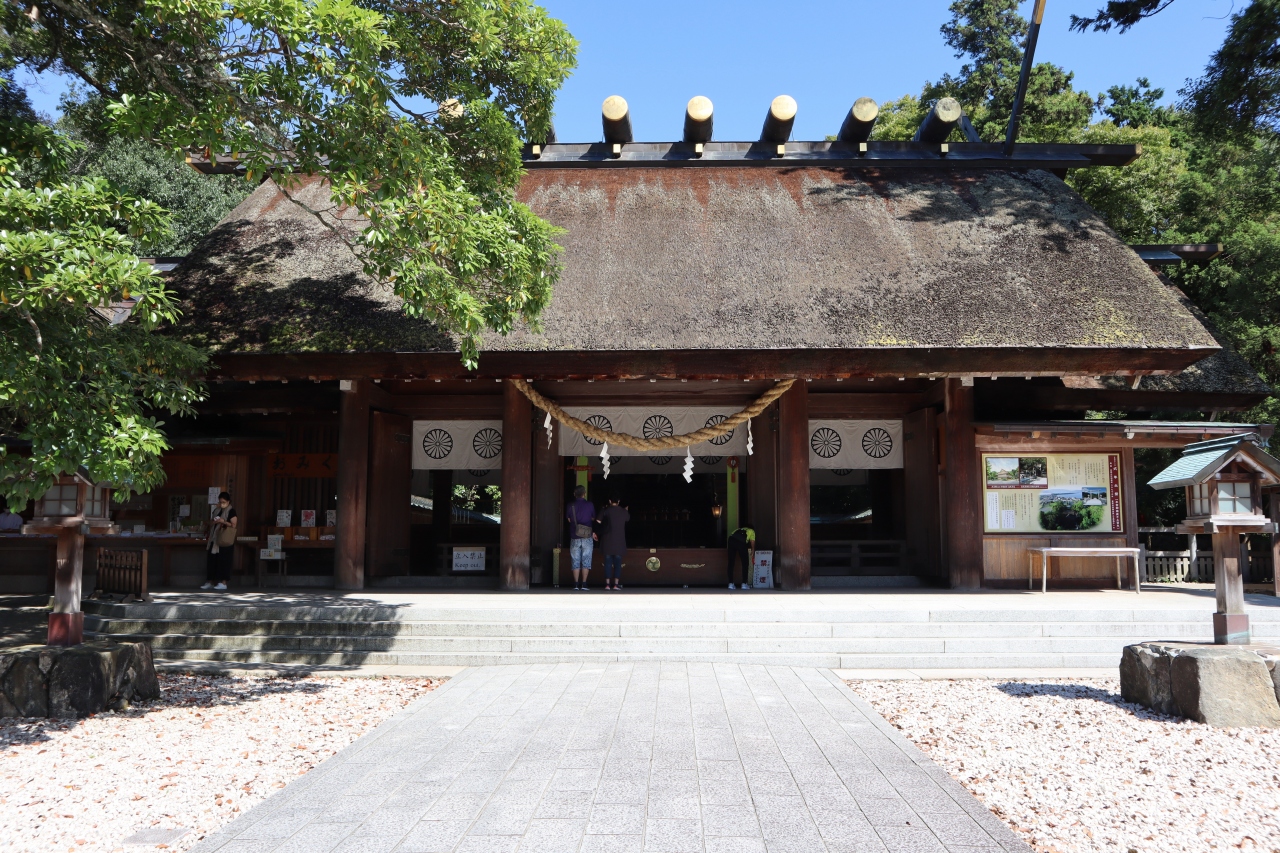 本殿正面には伊勢神宮と籠神社にしか祀ることが許されていない五色の座玉(すえたま)が輝いています。