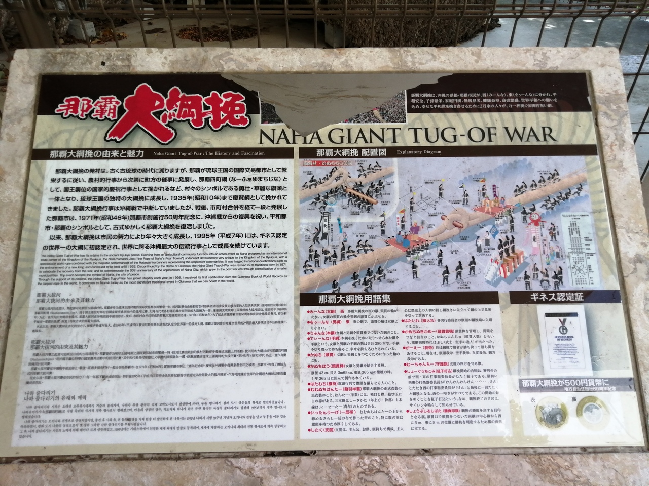 公園の一画には毎年10月に行われる「那覇大綱挽」で使用される大綱が展示保管されています。今まで見たこともない大きさで度肝を抜かれます。一見の価値ありです。