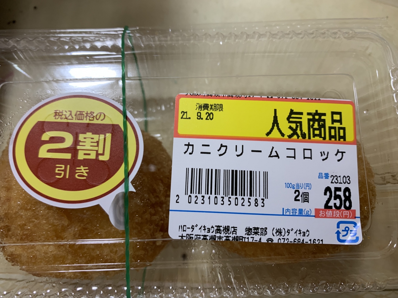 今回 昼間買わずに 夕方再度行ったら、売り切れていた「カニクリームコロッケ」