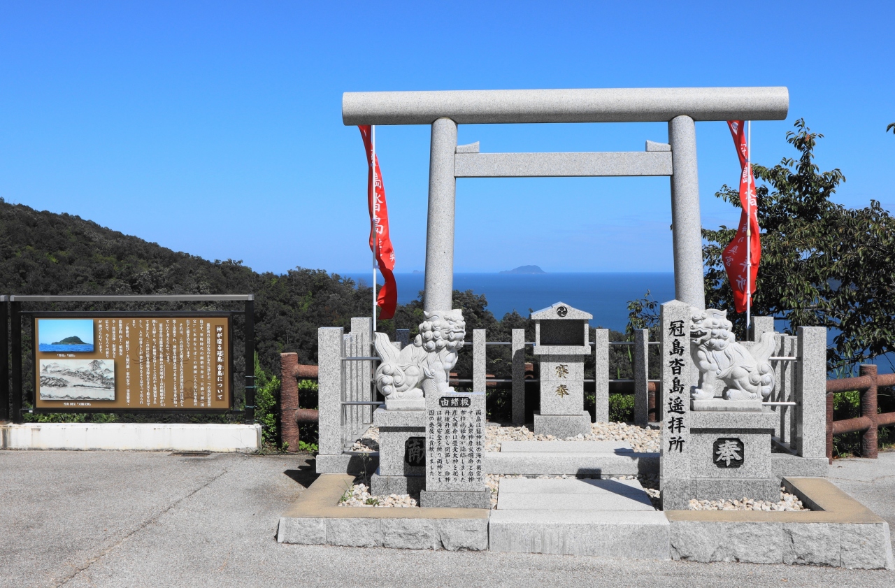 以前にはなかった、「冠島沓島遥拝所」と言うのがあって、鳥居の先に神宿る島、 冠島 と沓島が見えました。