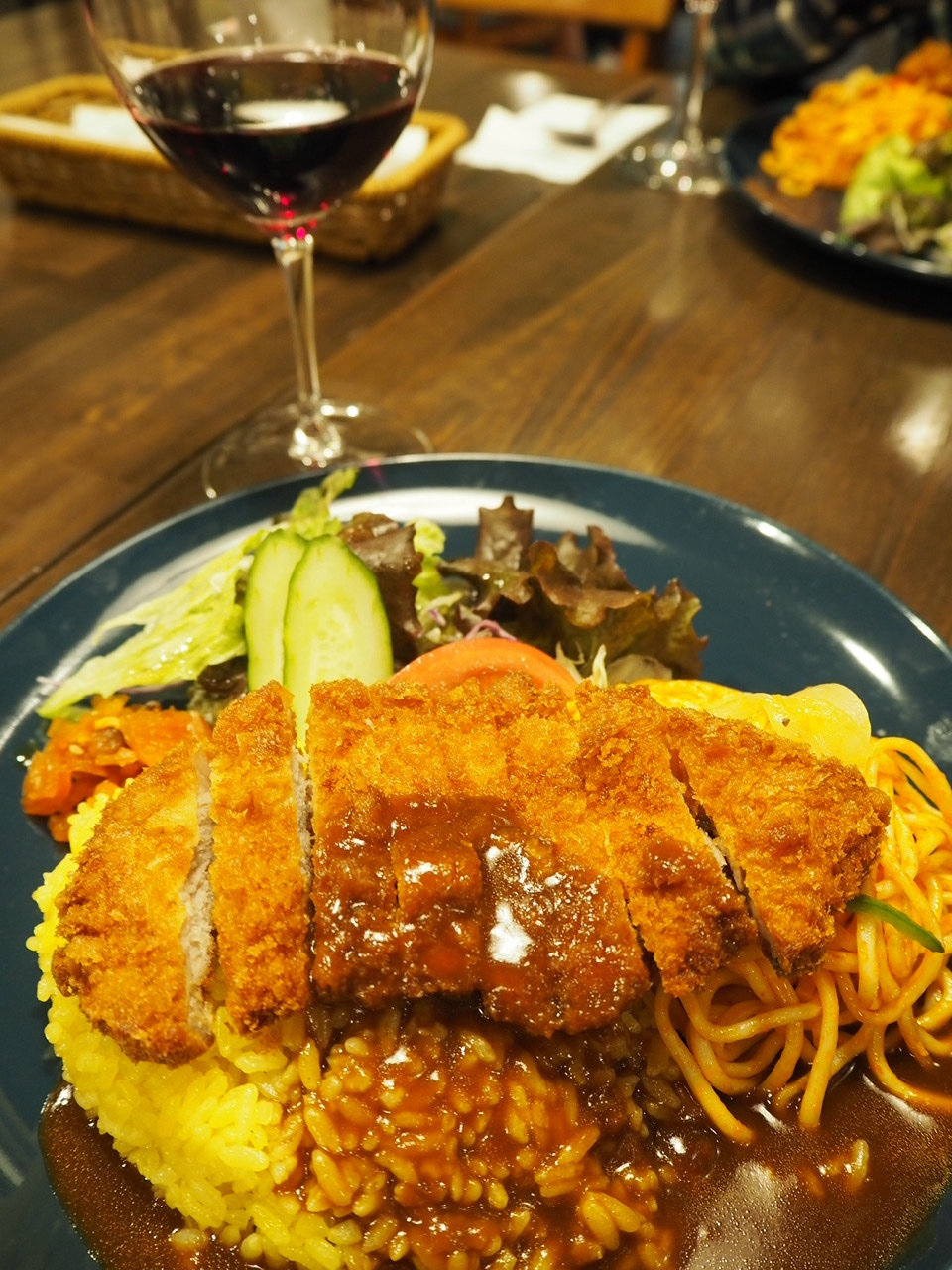 2,200円のトルコライスセットにしました。念願のトルコライスはカツ、スパゲティ、ピラフ、ソース全てが本格的な味でB級感は全くなく、若くない私達でも大変美味しく完食しました。一緒に頼んだ解禁したてのボジョレーヌーボーともばっちりでした。