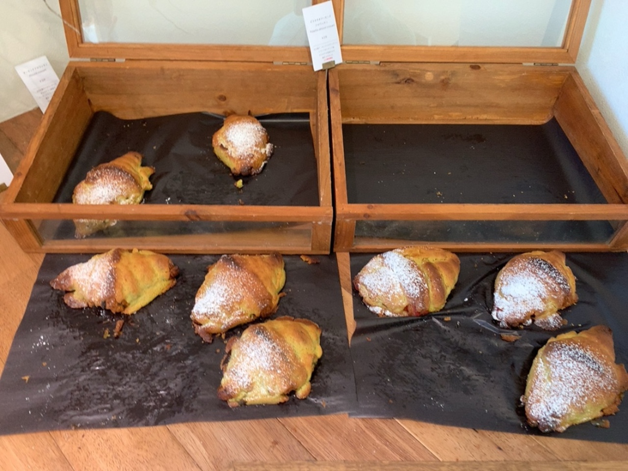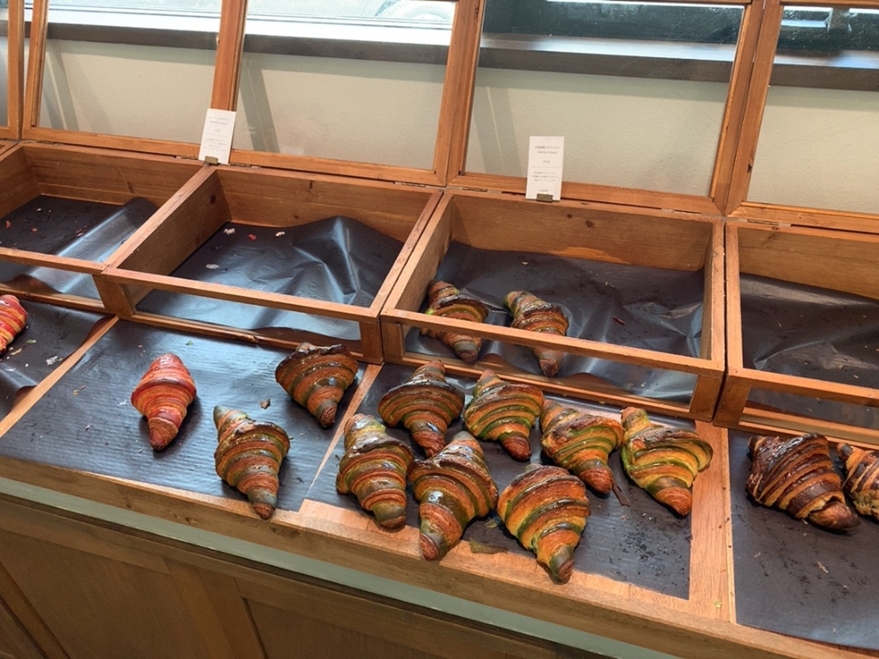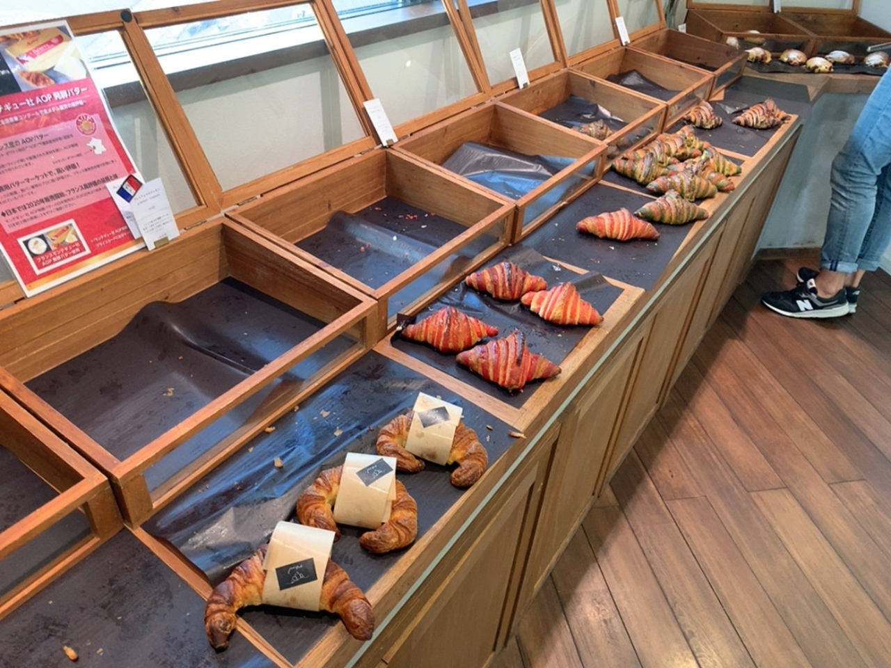 日曜日の朝10時前に行ったところ、一応全種類のクロワッサンはまだ残ってましたけど、残り少ない種類もありました。 お昼前には売り切れてしまうのでは?と思いました。